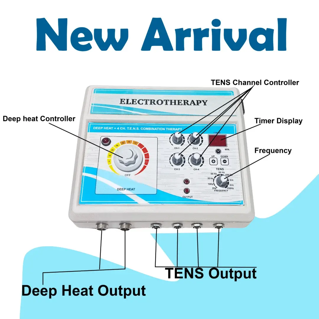 Upgrade your physiotherapy clinic with 2 Channel Deep Heat + 4 Channel TENS Combination Therapy Machine – a powerful electrotherapy unit designed for pain management, muscle stimulation, and rehabilitation treatments.